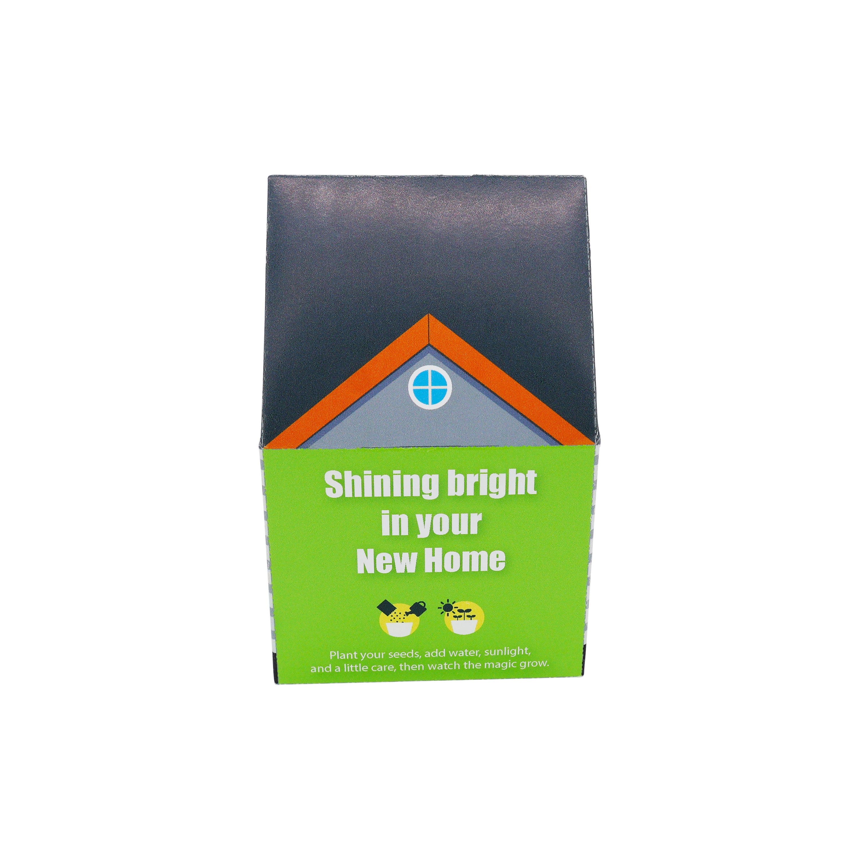 Each kit includes a small pot, coconut husk growing medium, and premium seeds — all packaged in a carton cutely shaped like a house. With its full-color customizable wrap, this gift is both symbolic and practical, making it the perfect way to celebrate homeownership.