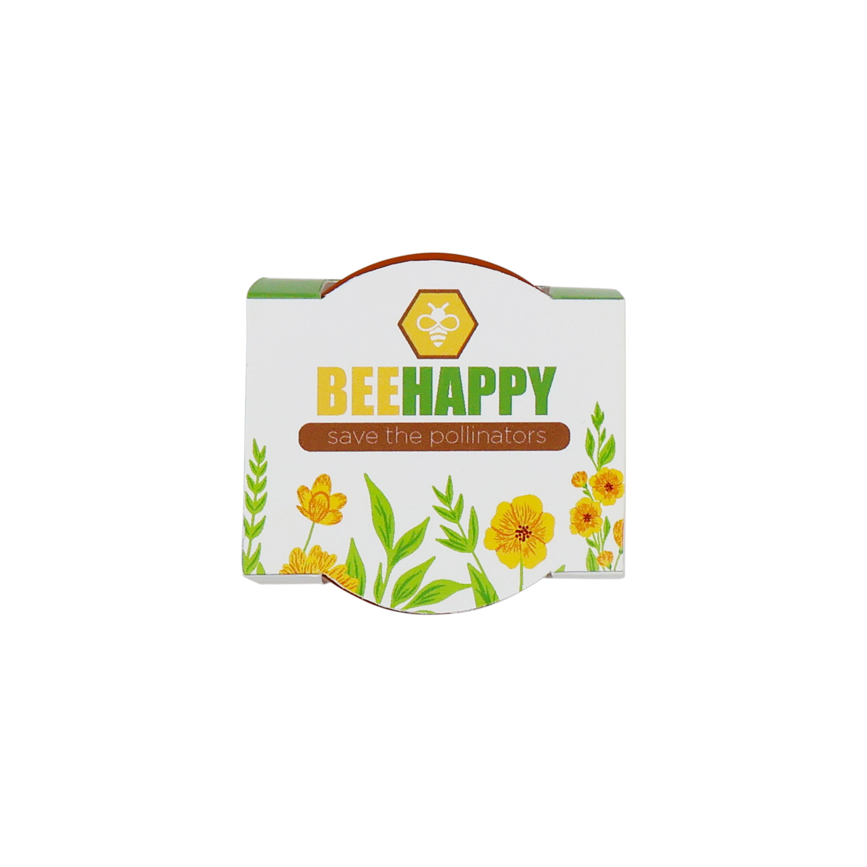 The Bee Happy Grow Kit embodies the values of eco-conscious branding. Made from natural, biodegradable materials and free from plastics, it aligns with global efforts to protect pollinators and reduce waste. The wildflower seed mix not only beautifies spaces but also contributes to healthier ecosystems by supporting pollinator habitats.
