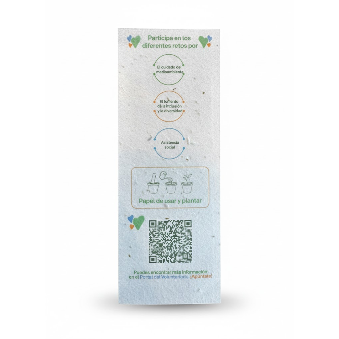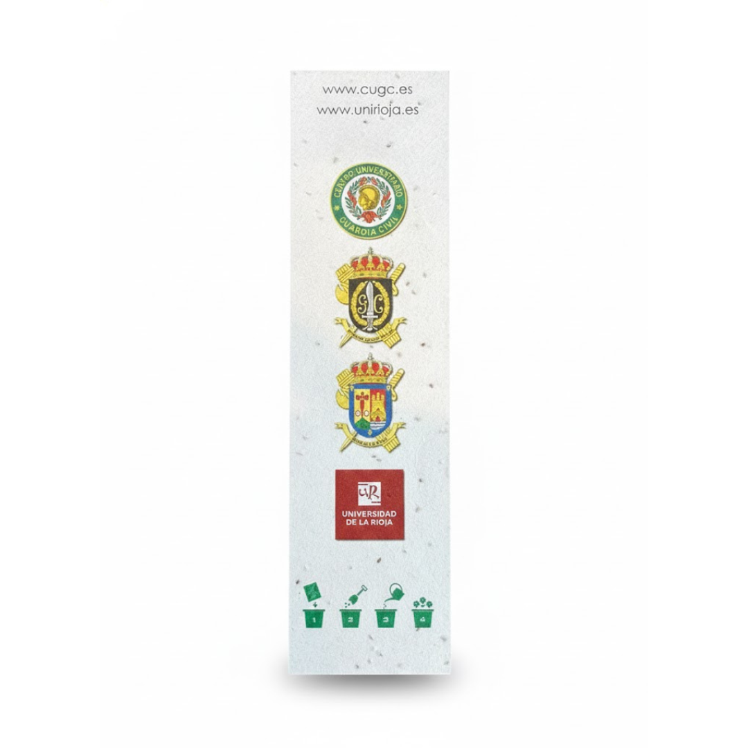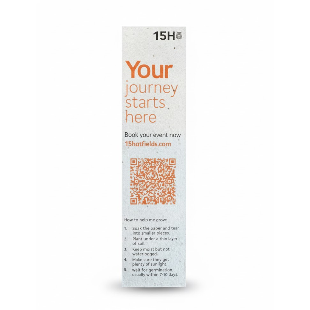 Seeded Paper Bookmarks offer a meaningful alternative to traditional promotional bookmarks. Made from handmade recycled paper embedded with non-GMO seeds, each bookmark is designed to be planted after use and grow into flowers, herbs, or vegetables. Fully customizable in size and shape, bookmarks can be printed in vibrant 4-color process on one or both sides. With hundreds of seed varieties available—including many organic options—these bookmarks are ideal for education, libraries, corporate gifts, events, and sustainability-focused campaigns.
